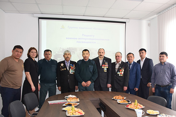 Ежегодное чествование воинов-интернационалистов - сотрудников ГК ''Конденсат''. Генеральный директор АО ''АГПЭ'' А.З.Абзалилов поздравляет воина-интернационалиста - тракториста и слесаря А.А.Серегина. Февраль 2018 г.