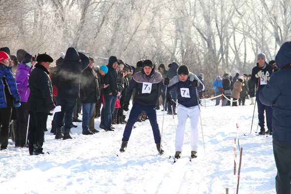 Команда ''Энергетик-Аксай'' в лыжной эстафете из программы XIX спартакиады ''Здоровье''. Эстафету передает А.Тутуров М.Геймуру. Январь 2019 г.