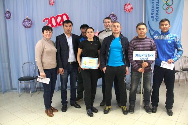 Сотрудники АО ''АГПЭ'' в команде ''Энергетик-Аксай'' участвуют в соревнования по шашкам из программы XX спартакиады ''Здоровье''. На переднем плане М.Ергалиев. Январь 2020 г.