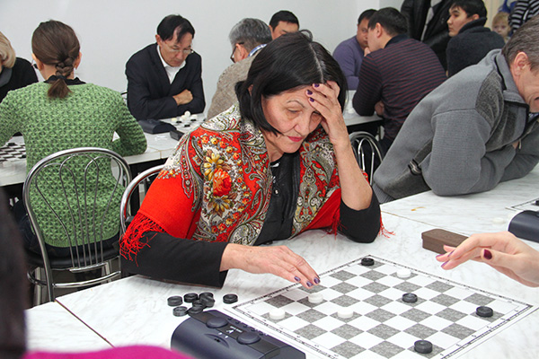 З.Богоутдинова играет за команду ''Нафта'' в соревнованиях по шашкам из программы XVIII спартакиады ''Здоровье''. Январь 2018 г.