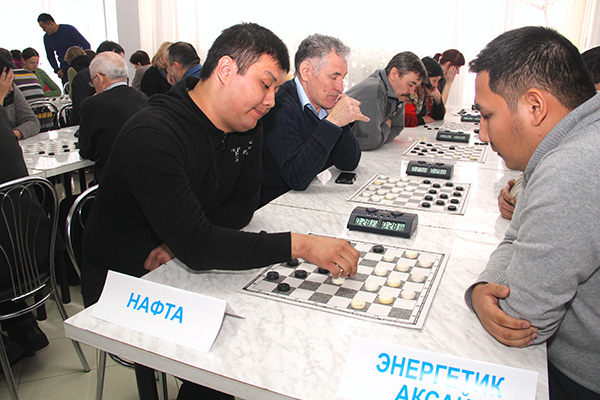 Команда ''Нафта'' (справа) в соревнованиях по шашкам из программы XIX спартакиады ''Здоровье''. Январь 2019 г.