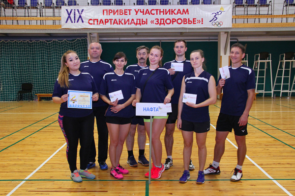 Команда ''Нафта'' - серебряный призер соревнований по бадминтону в парном разряде в XVIII спартакиаде ''Здоровье''. Апрель 2018 г.