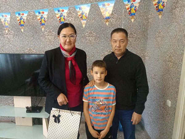 Денис ждал гостей. Стол уже был накрыт всевозможными угощениями, скоро с концерта, посвященному Дню Республики, должны были вернуться остальные дети. Дина Галиметденова и секретарь Попечительского совета ОО “Конденсат-Келешек” Дамир Курмангалиев поздравили мальчика, пожелали ему успехов во всех сферах жизни и вручили подарок. Денис был очень рад и смущенно улыбался. Еще бы! Какой ребенок не любит подарки, особенно в свой день рождения.