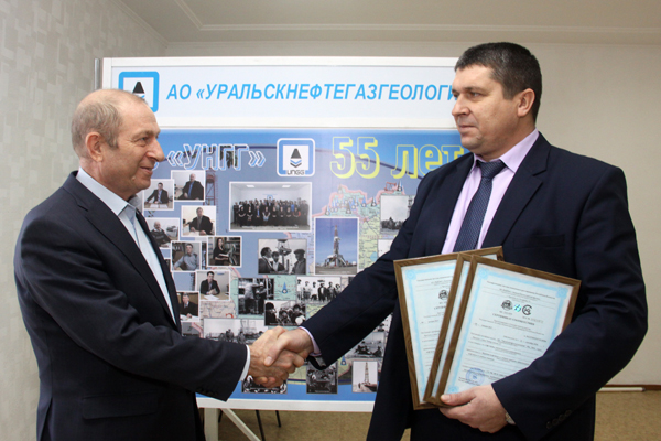 В минувший вторник в АО «Уральскнефтегазгеология» произошло знаменательное событие. Директор Западно-Казахстанского филиала АО «Национальный центр экспертизы и сертификации» Виктор Графкин вручил генеральному директору АО «Уральскнефтегазгеология» Олегу Шароватову сразу три сертификата по менеджменту качества.