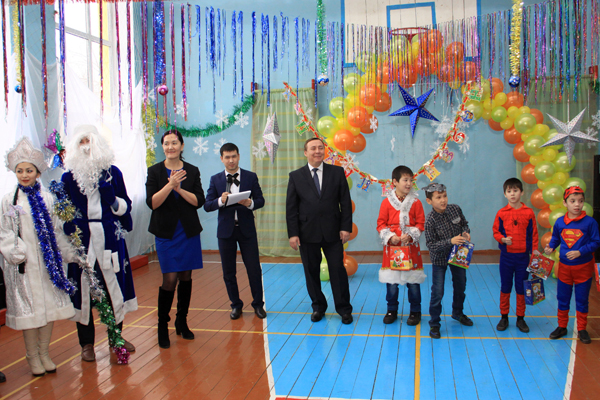 Как всегда, наиболее празднично встреча с шефами прошла в СОШ №40. Педагоги похвалились успешно пройденной аттестацией, которая закончилась накануне, и 100-процентной успеваемостью. Учащиеся четвертых, девятых и одиннадцатых классов показали отличные результаты на контрольных тестированиях. Здесь учатся 653 ребенка, не считая мини-центра, в том числе 74 отличника и 187 ударников. Новогодние елки в этой школе проводят полностью своими силами, привлекая старшеклассников – членов юношеской организации «Жас Улан» в качестве ведущих и аниматоров. Около 50 детишек из малообеспеченных семей пришли на встречу с шефами и с удовольствием водили вместе с ними хороводы вокруг нарядной елки. В ролях Ақшақар (Снегурочки) и Аяз Ата (Деда Мороза) выступили хореограф и учитель технологии школы, а учитель музыки Айдарбек ХАЙРУЛЛИН порадовал всех своим вокалом, исполняя вживую одну песню за другой.
