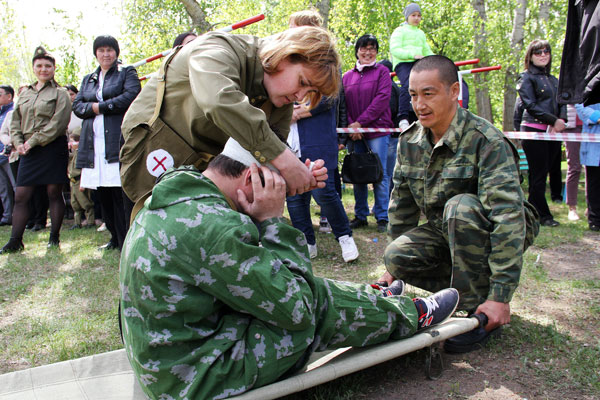 Открыла майское мероприятие военно-спортивная эстафета, где проявились не только физические качества, но и смекалка, находчивость и способность ориентироваться в любой жизненной ситуации. Участникам из восьми команд, среди которых в этом году впервые участвовал коллектив ТОО «Батыс Пауэр», как можно быстрее и без ошибок требовалось пройти несколько этапов, включающих разборку и сборку автомата, преодоление препятствия из колючей проволоки, метание гранаты, подтягивание на турнике, стрельбу из пневматической винтовки, прохождение лабиринта, а также рукохода и бума. В завершении всего «медсестра» бинтовала раненого «бойца», которого на носилках транспортировали к финишу. Все участники старались, как только могли, болельщики подбадривали коллег, а ветераны – Лидия Игнатьевна ГУБАНОВА, Александр Иванович КАЗИН, Константин Леонтьевич КОЧЕРЕЖКИН и Павел Георгиевич ХОРОШКИН - с улыбкой наблюдали за происходящим из специальной «ложи», где их предусмотрительно укутали в пледы, чтобы они не простудились на весеннем ветерке.
