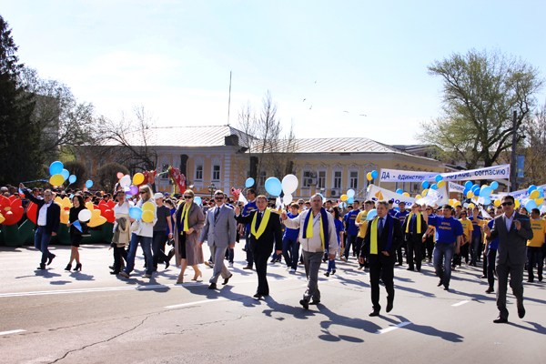 Перед началом шествия председатель совета ГКК Валерий Джунусов искренне поздравил работников компаний с праздником, пожелал им здоровья, счастья и благополучия.