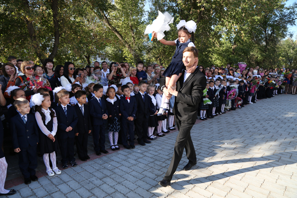Выступления лауреата многих республиканских и международных конкурсов Алексея ШИНА и еще совсем маленькой, но очень голосистой Екатерины КИМ только подчеркнули особенность нынешнего 1 сентября для «седьмой» школы Уральска.