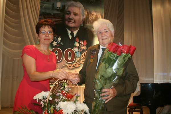 Юбилярша скромно и с благодарностью принимала поздравления и в честь нее красиво исполненные песни. И только по тому, как иногда искрились ее глаза, можно было понять, с каким трепетным волнением ложатся на душу воспоминания о былом. Сцена была устлана цветами. В подарок от работников областной библиотеки ветерану вручили мультимедийную книгу, в которой представлен жизненный путь героини. Осталась верна своей доброй традиции и Группа компаний «Конденсат», которая бережно относится к своим подшефным ветеранам Великой Отечественной войны.