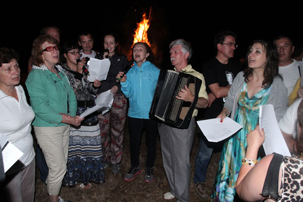 А у костра тем временем собралось множество людей, и все они завороженно наблюдали, как время от времени языки пламени задорно, как и полагается молодому 21-летнему созданию, взмывали в воздух. У костра нельзя обойтись без песни – «костровой» - бардовской: «Бригантины», «Люди идут по свету», «Перекаты» и «Как здорово…» , которые объединяют молодое поколение со взрослым… Наверное, Елена Акатова права: некое ощущение стабильности в происходящем, безусловно, было. Ведь все шло так, как должно быть, до мелочей. Осознание этого факта лишь добавляло в атмосферу ощущение умиротворенной радости и покоя. Все знали: еще немного – и небо окрасится всплесками праздничного фейерверка в 21 залп. А через год праздник придет снова.