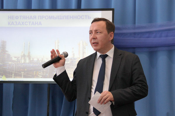Школьники узнали, как проходит сложный процесс добычи и переработки «черного золота», о его свойствах, а также о крупнейших нефтяных месторождениях и НПЗ страны, в числе которых и нефтеперерабатывающий завод АО «Конденсат», единственный в стране производящий бензин класса К5. Основная мысль выступления для школьников оказалась понятной: нефтегазовая отрасль – это огромная наукоемкая и высокотехнологичная индустрия, являющаяся доминантой в развитии Казахстана и приносящая основной доход государству.