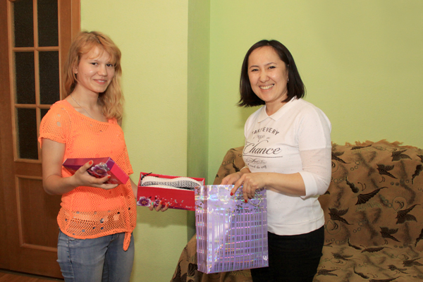 Она радушно встретила дорогих гостей, с удовольствием накрывала на стол. Мурат Кенесов и Асель Айтмагамбетова от имени «Конденсата» вручили Кристине часы, кроссовки, дополнительное оборудование к телефону, от всего сердца пожелали здоровья, счастья, успехов в учебе и исполнения всех желаний. Именинница радушно пригласила гостей за стол. Общение шло легко и непринужденно, ведь это была встреча старых добрых друзей.