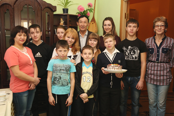 За праздничным дастарханом поздравить Олега собрались воспитанники коттеджа всем составом вместе с основным воспитателем – «мамой» Раузой ЕСЕНГЕЛЬДИЕВОЙ и «тетей» Нурзилей ЖАКСЫГАЛИЕВОЙ. Мороз в этот день был отменный и общую фотографию на память решили сделать в семейной обстановке. К следующему приезду шефов Олег обещал продемонстрировать еще и хорошую физическую форму.