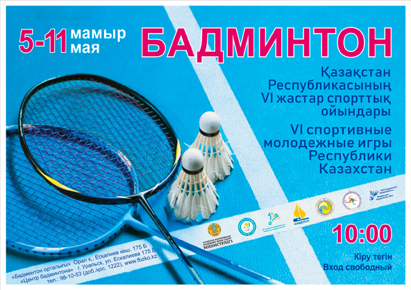 Место проведения: Центр бадминтона, ул. Ескалиева, 175Б, тел.:98-10-53