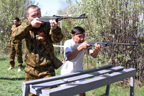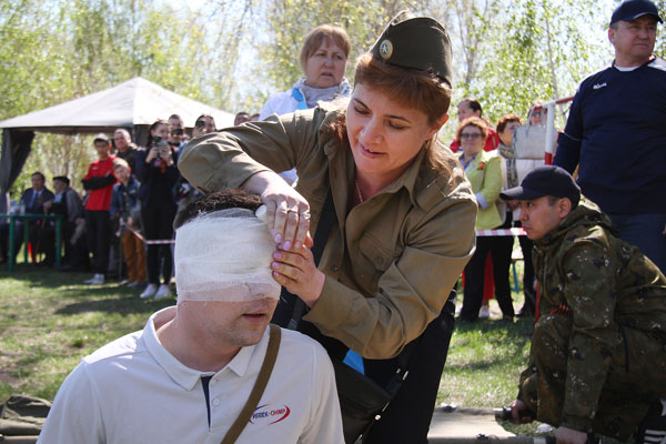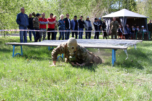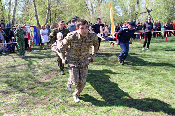 Праздник традиционно начинается с военно-спортивной эстафеты. Участникам нужно на время разобрать и собрать автомат Калашникова – самое, кстати, узнаваемое оружие на планете, - а затем передать эстафету следующему участнику. Следующий этап – надевание противогаза, преодоление «мышеловки» (низко натянутая сетка) и метание гранат в условный танк. Далее стометровка, подтягивание, выбивание мишени из пневматической винтовки, а затем «змейка», «рукоход» и бревно. На последнем этапе умаявшегося участника берут под свою опеку санитарки. Их задача – правильно наложить повязку на голову «раненного бойца», которого после этого на носилках доставляют к финишу. На словах это все выглядит достаточно просто. Но невозможно передать даже доли того накала эмоций, который царит на площадке соревнований. Каждая команда – а представлено было 8 от крупных предприятий консорциума – работает с абсолютной самоотдачей, ведь за них болеют коллеги, а в «специальной ложе» за их соревнованиями наблюдают ветераны.