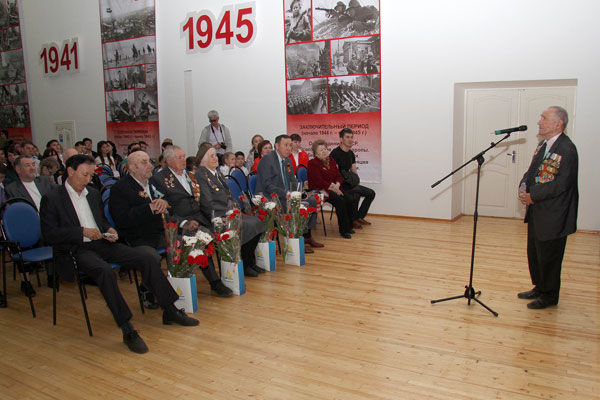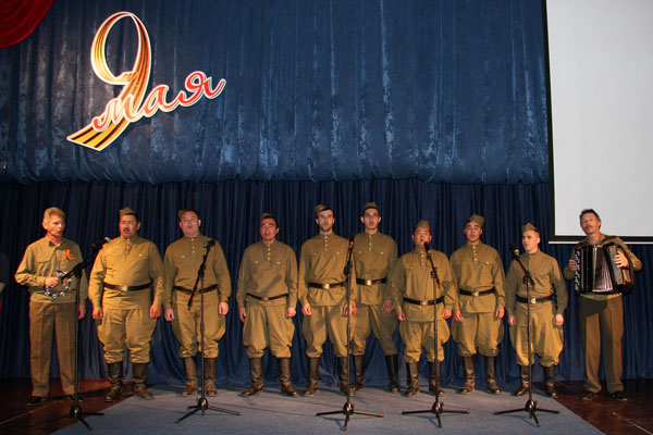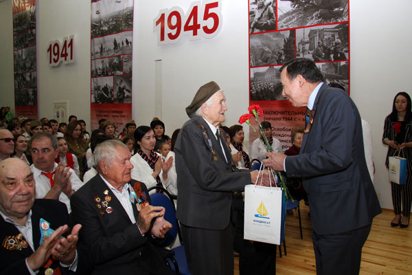 После короткого перерыва началась самая торжественная и душевная часть праздника – поздравление ветеранов, вручение им подарков В.К. Джунусовым, который в 2005 году предложил взять шефство над группой ветеранов, и конкурс военной песни.