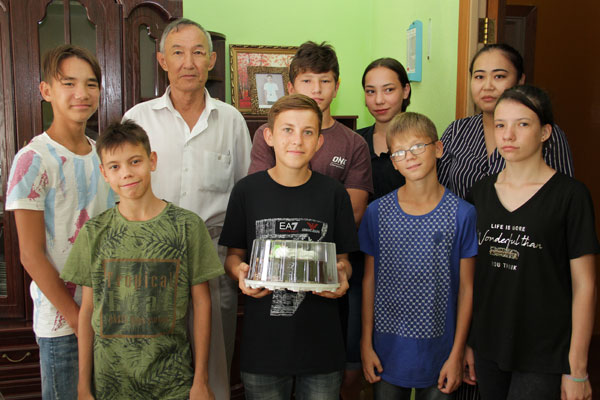 Общаясь за праздничным столом, заботливо накрытым к приезду шефов, ребята поделились своими новостями. Сейчас в коттедже проживает восемь человек, трое из которых, включая выпускников 9-х классов Валеру Александрова, Оксану Зибореву и новичка Алину Толкунову(недавно перешла в 3-й из другого коттеджа), вскоре покинут их дружный коллектив и уйдут учиться в колледжи, овладевая профессиональными навыками. Подошедшие к своему неизбежному закату летние каникулы подшефные воспитанники провели весьма плодотворно. По словам мамы Розы, двое из них отдыхали в Боровом, другие побывали в детских лагерях отдыха «Атамекен» и «Самал», съездили в турпоездки в Астану и Актау. А вот Максим Зеленин в составе футбольной команды в ближайшие дни собирается посетить Алматы. Ребята и мама Роза поблагодарили шефов, заметив, что подарки и слова поздравления получать всегда приятно и особенно от тех, кто проявляет искреннюю заботу и кого они считают своей настоящей семьей.