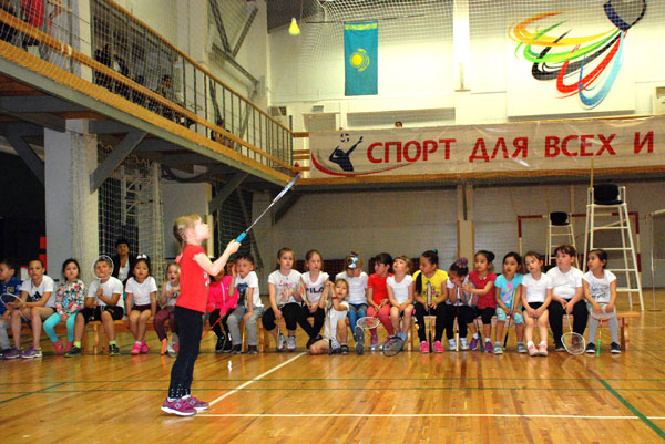 Для самых юных участников турнира был организован конкурс по набиванию ракеткой волана. Кто с трех попыток делал самую длинную серию ударов, тот и побеждал в этом конкурсе. Здесь ребята и девчата показали свою настойчивость, аккуратность и ловкость. Старательно набивая волан на максимальную высоту, каждый старался сделать как можно больше ударов. В итоге у девочек лучше всех это удалось сделать шестилетней Алине Наумовой. Она занимается бадминтоном под руководством мамы, тренера по бадминтону, и делает уверенные шаги по освоению техники игры в сочетании с регулярным общефизическим развитием. У мальчиков в этом виде соревновательной программы отличился восьмилетний Оразбек Капашев.