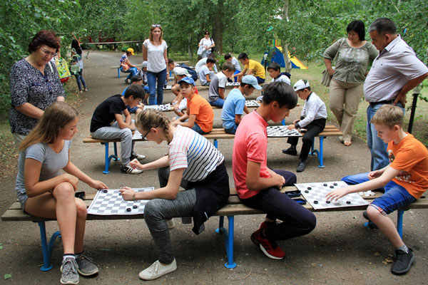 Следующим этапом детского спортивного марафона стал турнир по шашкам. В тени деревьев, на свежем воздухе девчонки и мальчишки погрузились в раздумья, считая варианты в поисках победных комбинаций и тактических ударов, которые бы принесли победу. У мальчиков из 25 участников самым результативным и творческим оказался подход юного Надира Жангали («Энергетик-Уральск»), он стал первым. Второе место у Султана Салимова («Уральскнефтегазгеология»), третье у Ракымжана Маратжана («Энергетик-Уральск»). У девочек из 16 участниц первое место заняла Анна Ку («Интек-ОНМР»), второй стала Айжан Бакесова («Энергетик-Аксай»), третье место у Елены Степанищевой («Интек-ОНМР»).