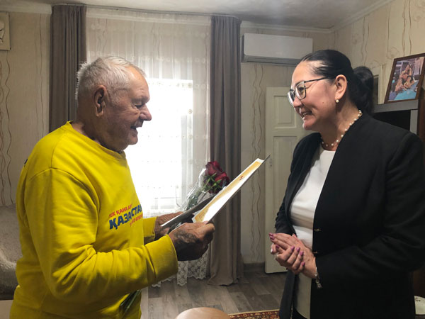 1 ноября юбилей у ветерана Великой Отечественной войны Кочережкина Константина Леонтьевича. С девяносто пятым днем рождения юбиляра поздравила председатель Совета директоров АО «Конденсат», депутат Западно-Казахстанского областного маслихата Дина Галиметденова. Ветеран встретил гостей в добром здравии и с хорошим настроением.