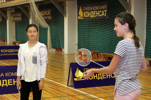 Ребята и девушки показали красивую, динамичную игру с многочисленными ударами и техническими приемами, а юные зрители с удовольствием хлопали особо красивым розыгрышам волана на корте.