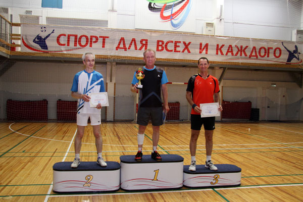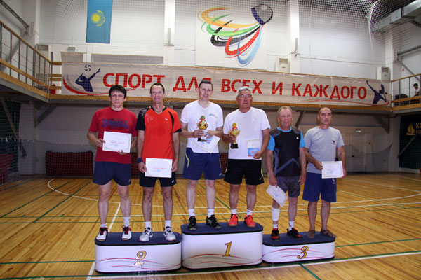 В финале у мужчин старше 50 лет победителем стал наш гость из Костаная, опытный тренер ДЮСШ по бадминтону, мастер спорта СССР Александр Крохалев. Второе место у сотрудника института сейсмологии Александра Воецкого (г. Алматы). Третье место у Владимира Лачугина (КПО б.в.) и Вячеслава Широбокова (КПО б.в.).