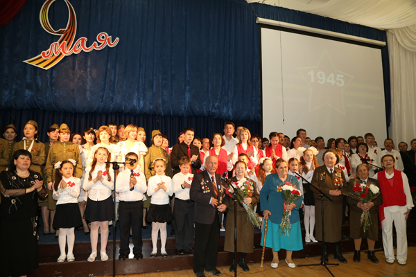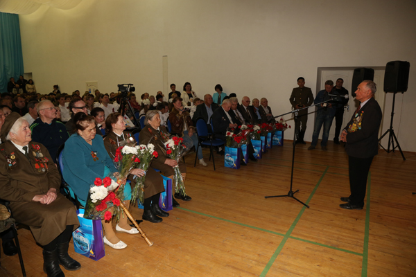 Перед началом программы Валерий Кинжегалиевич тепло поздравил всех с Днём Победы, пожелав всем мира, добра и благополучия. «Мы с вами выросли в мирное время, и порой кажется, что так всегда было и будет. Но события последних лет на Ближнем Востоке, на Украине показывают, как хрупок этот мир. Эти мирные 69 лет - заслуга тех, кто не вернулся с ратных полей, это заслуга наших ветеранов, своей кровью добывших право на мирную и благополучную жизнь нам, своим потомкам. Мы должны быть благодарны им за этот бесценный дар, и помнить, что мы тоже в ответе за сохранение мира на земле, чтобы наши дети и внуки жили счастливо», - обратился он к залу. После этого ветеранам были вручены цветы и подарки.