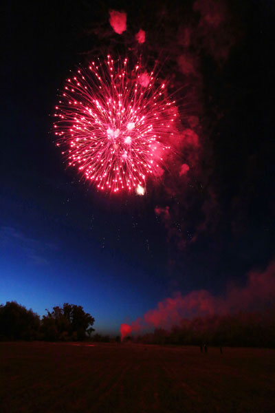 Чуть позже, когда уже стемнело, наступило время для костра и долгожданного фейерверка. Самые верные участники праздника и все гости кемпинга пришли на большую поляну, где был зажжен традиционный огромный костер и дружно спели любимые песни. Первый залп праздничного салюта прогремел с первыми аккордами знаменитого концерта №1 П.Чайковского и под восторженные возгласы гостей. По традиции число залпов равняется числу лет компании. 30 залпов! Участники праздника от души насладились немыслимой красотой разноцветных огней, озаривших уже ночное праздничное небо «Мечты».
