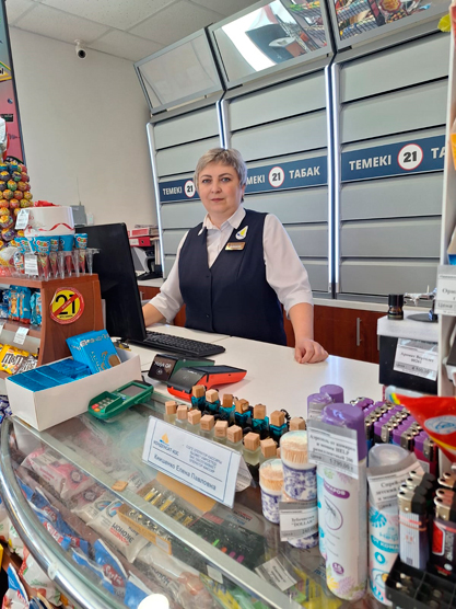 Будучи уже опытным специалистом в сфере продаж, в 2021 году Елена Павловна была принята на должность оператора-кассира АЗС №7 в ТОО «Конденсат-АЗС». Буквально через полгода была переведена на АЗС №1 уже в новой должности старшего оператора-кассира.